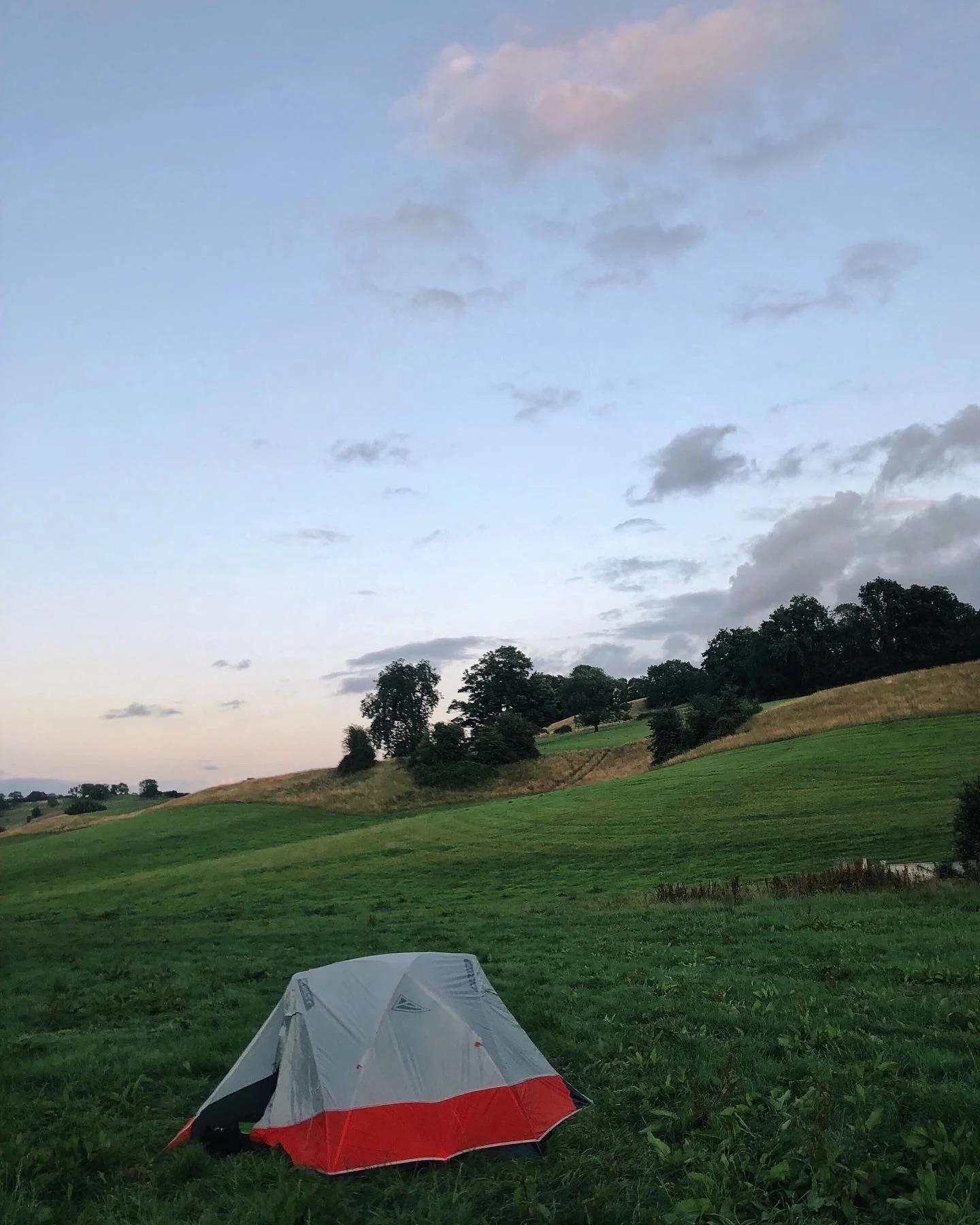 Haunting beautiful polyphonic chanting echoed across the fields as I caught my breath outside. A rainbow dipped and bowed to a cluster of stars. Exhausted, I felt strangely emotional. I realised there must have been some sort of community practice going on. Where this community of singers came from remains a mystery to me, save to say every cottage in that part of Somerset must provide a fine voice. Being awkward and English I didn’t have it in me to interrupt the practice to say we’d got lost, even though I’d left my girlfriend in agony on a hillside in yet another shower. Instead, I did what any self respecting Englishman would do. I lingered with intent. They knew I was there. I waited it out and as I did so, I let out a few quiet tears, those lush almost enjoyable ones that comfort from time to time. The rainbow over the hillside had really settled in and flecks of rain whipped on the breeze. It was beautiful. We’d have the tent up soon. It would be ok.